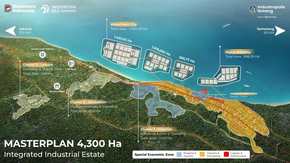 Industropolis Batang provides comprehensive supporting facilities such as ready-to-use factory buildings, commercial and retail areas, modern shopping centers, restaurants, hotels, co-working spaces, healthcare services, educational institutions, and residential apartments for workers. These facilities are designed to create a complete industrial ecosystem and a comfortable environment for businesses and communities.